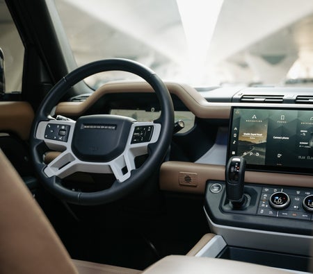 Mieten und fahren Dies Land Rover Defender 2025-Modell in Dubai, VAE  zum USD 326/Tag & USD 7072/Monat.Mietkosten enthalten Grundlegend umfassend Versicherung und Standard-Kilometerbegrenzung von Kilometerstand: 250 km/Tag (USD 2.72 pro zusätzlich km zutreffend). Kaution in Höhe von USD 952 ist nötig. Kontakt F10 Luxusautovermietung direkt für Buchungen und Anfragen...