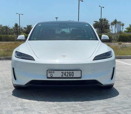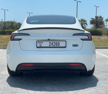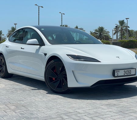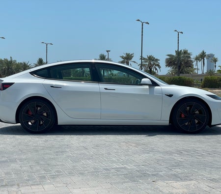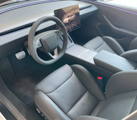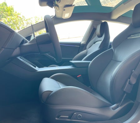 Alquila y conduce Esta Tesla Model 3 Performance 2024-Modelo en Dubai, EAU  para USD 109/día & USD 2081/mes.El costo del alquiler incluye Integral básico seguro y el límite de millaje estándar de kilometraje: 300 km/día (USD 1.36 por adicional km aplicable). depósito de seguridad de USD 544 es requerido. Contacto Alquiler de coches Yeti directamente para reservas y consultas...