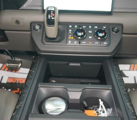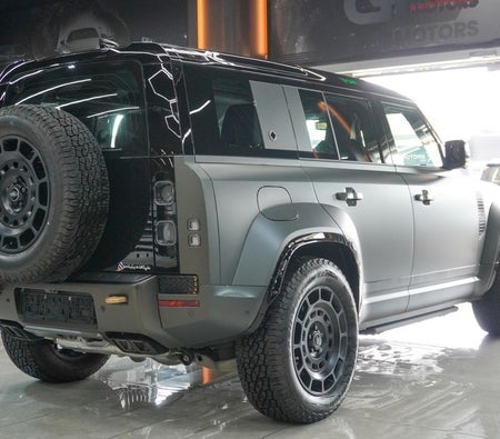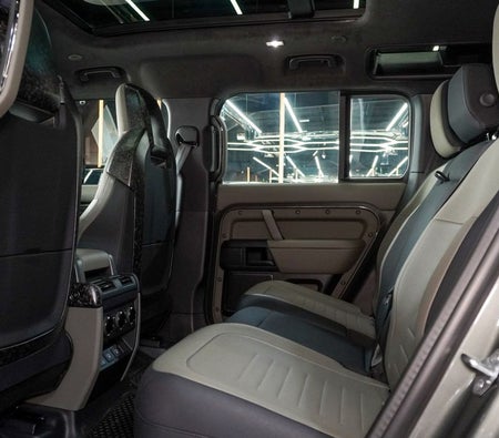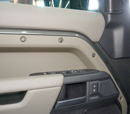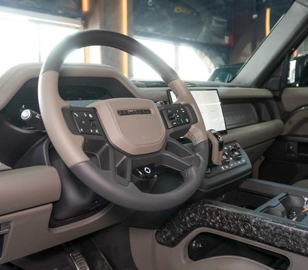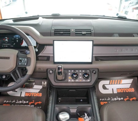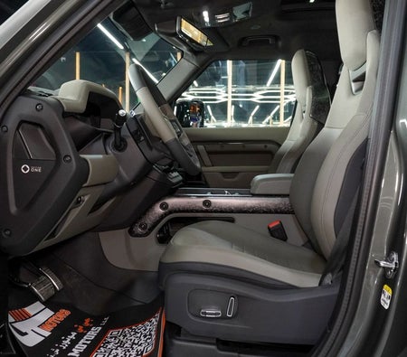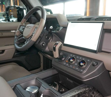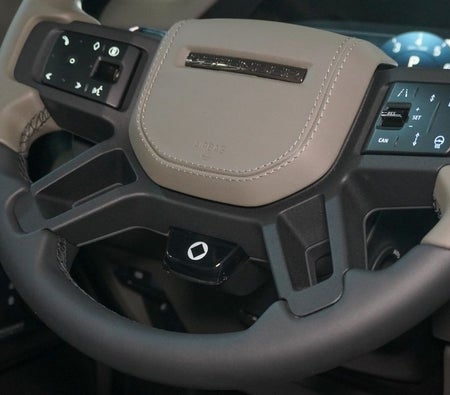 Brand new Land Rover Defender for sale in Dubai. Grey model, available at Najem Motors. This car has automatic transmission, cylinder engine, ″ wheels and beige interior. GCC specs.