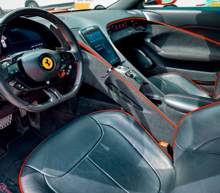 Louer et conduire Le présent Ferrari Roma 2021-Modèle en Abu Dhabi, EAU  pour USD 762/jour & USD 16592/mois. Le coût de la location comprend Base complète assurance et une limite de kilométrage standard de kilométrage: 250 km/jour (USD 2.72 par supplément km applicable). Dépôt de garantie de USD 1360 est nécessaire. Contact Location de voiture supérieure directement pour les réservations et les demandes de renseignements...