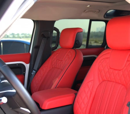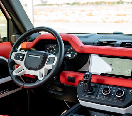 Louer et conduire Le présent Land Rover Defender V6 2021-Modèle en Dubai, EAU  pour USD 136/jour & USD 2720/mois. Le coût de la location comprend Base complète assurance et une limite de kilométrage standard de kilométrage: 300 km/jour (USD 1.36 par supplément km applicable). Dépôt de garantie de USD 544 est nécessaire. Contact Location de voitures de luxe Next Drive directement pour les réservations et les demandes de renseignements...