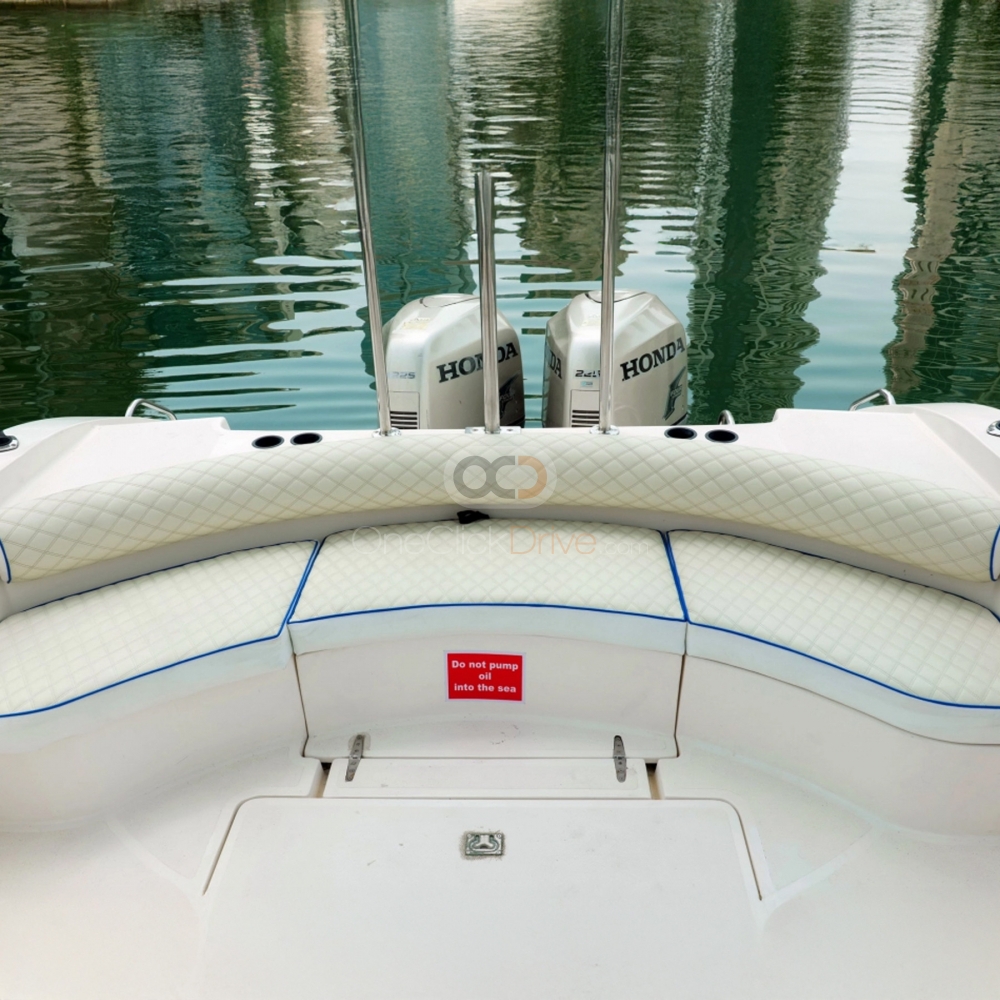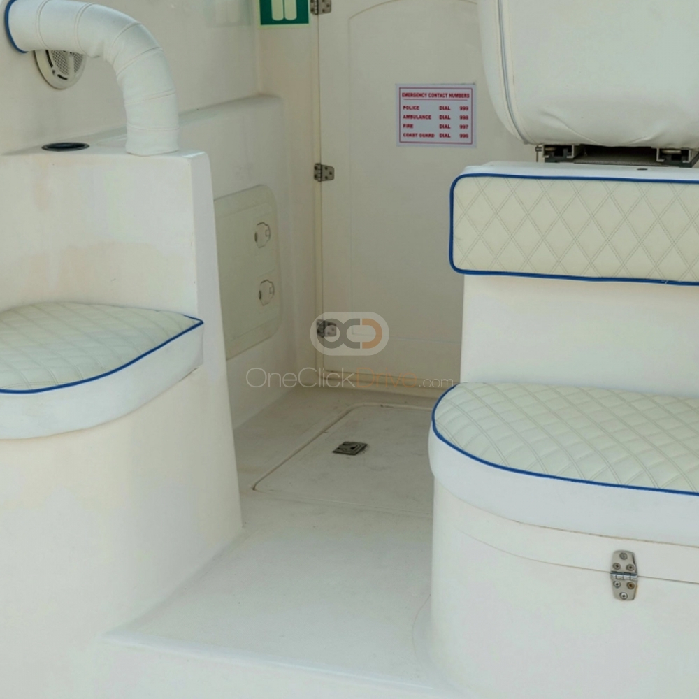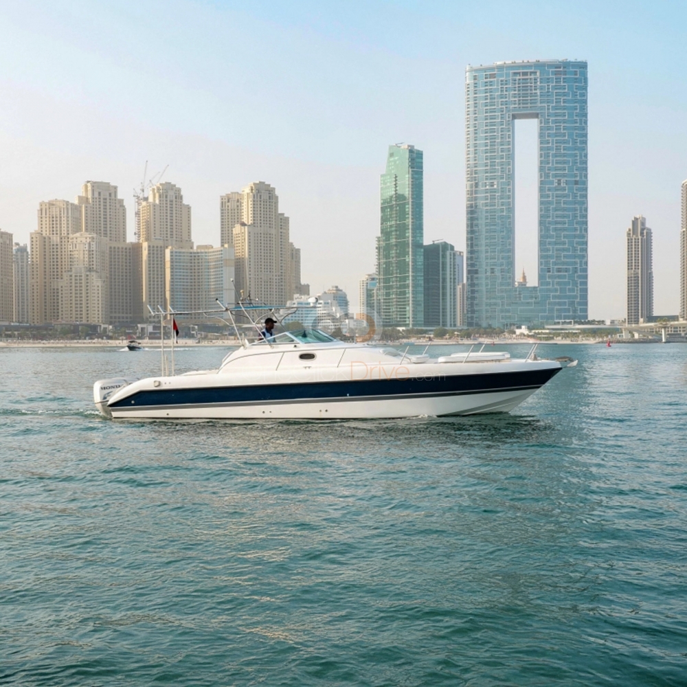 The Yacht is designed to provide a comfortable and luxurious experience for you and your guests while taking in the beauty of the surrounding scenery and exploring amazing attractions such as the sky-high Burj Khalifa, Atlantis Hotel, and man made Palm Jumeirah. With a length of 36 feet, this yacht can comfortably accommodate up to 10 guests. The boat also boasts an elegantly appointed interior, with plush seating and ample room to move around and socialize.